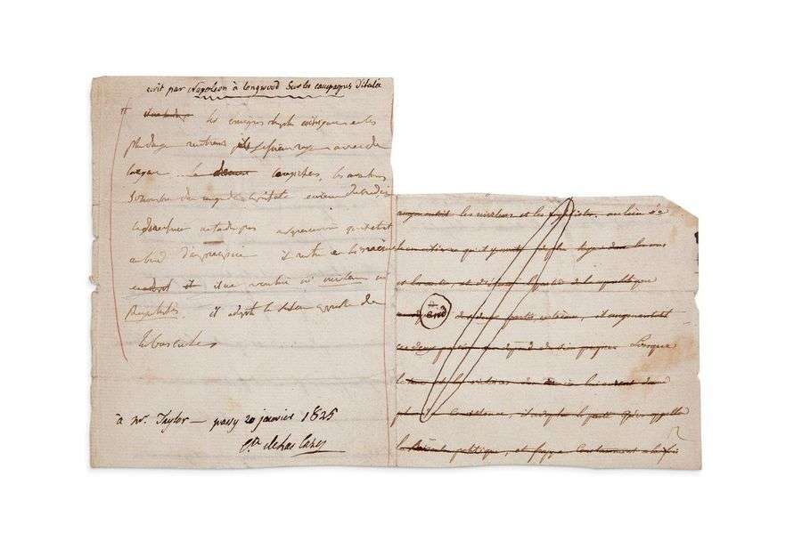 Manuscrit de Napoléon pour ses mémoires, recueilli par l'auteur du Mémorial de Sainte-Hélène.