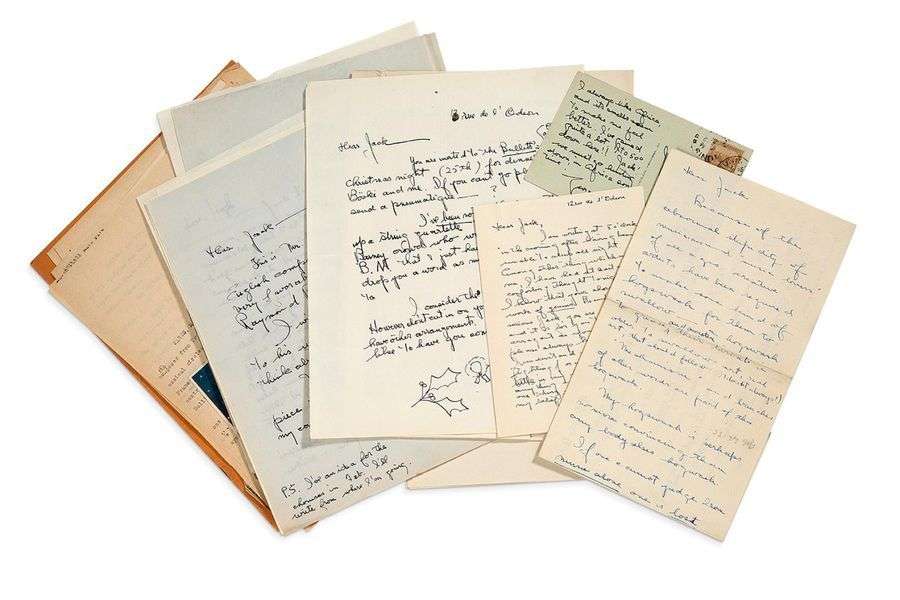 11 L.A.S. et 10 L.S. « George Antheil » ou « George », [1924-1930 et s.d.], à Jacques BENOIST-MÉCHIN | 25 pages formats divers, quelques adresses et enveloppes (deux au dos de cartes postales illustrées) | en anglais. Belle correspondance du compositeur américain à ses débuts, lors de ses années parisiennes.