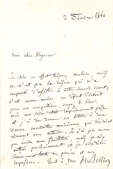 L.A.S. « H. Berlioz », 2 février 1860, à Richard WAGNER | 1 page in-8.