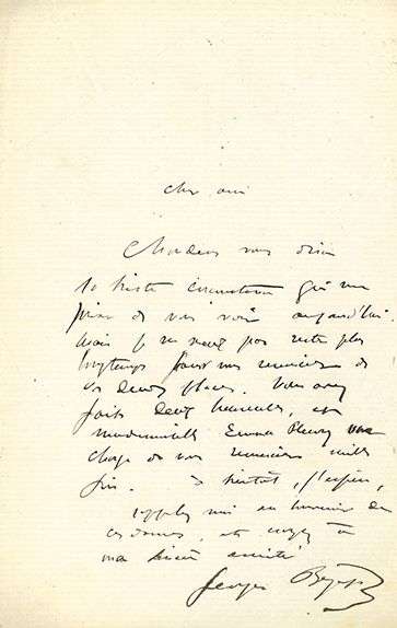 « Cher ami Choudens vous dira la triste circonstance qui me prive de vous voir aujourd’hui. Mais je ne veux pas rester plus longtemps sans vous remercier de vos deux places. Vous avez fait deux heureuses, et Mademoiselle Emma Fleury me charge de vous remercier mille fois »...