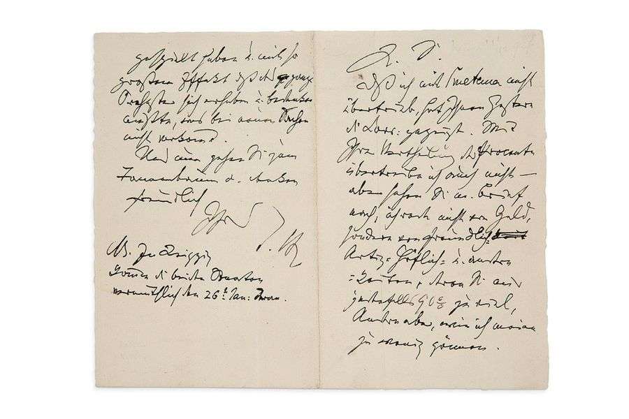 « Daß ich mit Smetana nicht übertrieb, hat Ihnen gestern die Korr[ekturen] gezeigt. Mit Ihrer Vertheilung der Procente übertreibe ich auch nicht – aber sehen Sie m[einen] Brief nach, ich rede nicht von Geld, sondern von Freundlich- Artig- Höfl ich- u. andern -Keiten, deren Sie mir jedenfalls 90% zu viel, Andern aber, wie ich meine zu wenig gönnen. Daß ich auch hier nicht übertreibe, wäre leicht an jedem Zinstermin neu zu beweisen. Aber es wäre unnütz| Sie stellen doch jede Geschichte auf de
