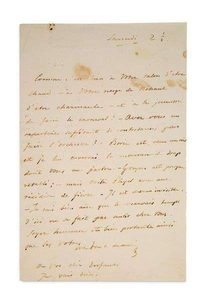 Très rare lettre à George Sand, une des rares lettres de Chopin qui ne fut pas brûlée par George Sand.