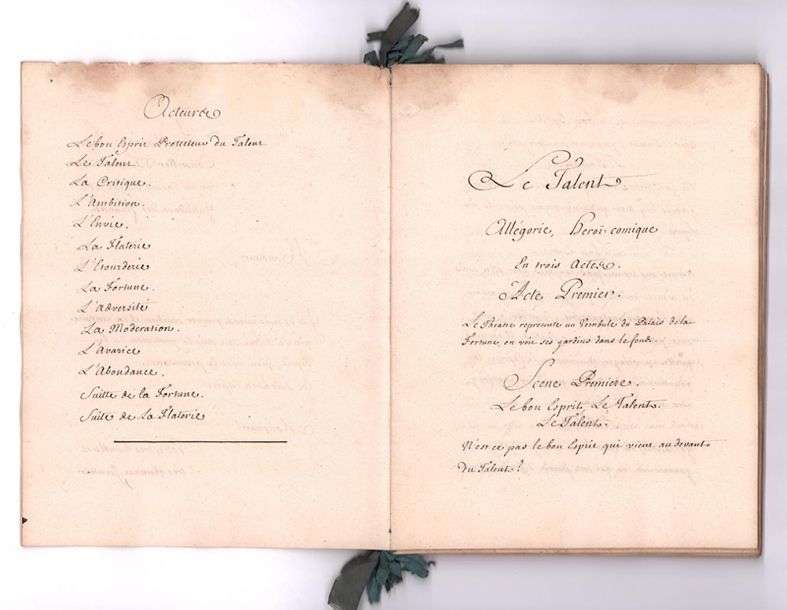 Manuscrit complet mis au net, avec quelques corrections autographes, de cette « allégorie, heroï-comique en trois actes », et en prose. Elle est dédiée à Louis FAGON, intendant des Finances (1714), conseiller d’État ordinaire, et membre du Conseil royal depuis 1722 : « Je ne puis mieux prouver combien il est nécessaire que le Talent soit sous la protection du bon Esprit, qu’en vous le présentant »…