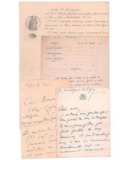 On joint une l.s. d’Ambroise THOMAS (1875, à en-tête de la Société des concerts de chant classique) | 2 la.s. de Reynaldo HAHN.
