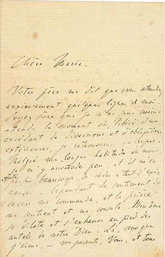 Belle lettre religieuse à une petite cousine.