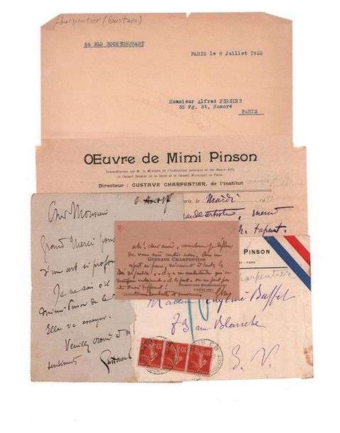 On joint 3 L.A.S. du sculpteur Gabriel-Jules Thomas, et 8 photos de la collection Félix Potin.