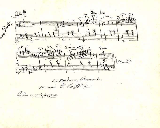 Il porte au-dessous la dédicace et la date : « À Madame Benazet, son ami G. Rossini Bade ce 8 Sept. 1856 ».