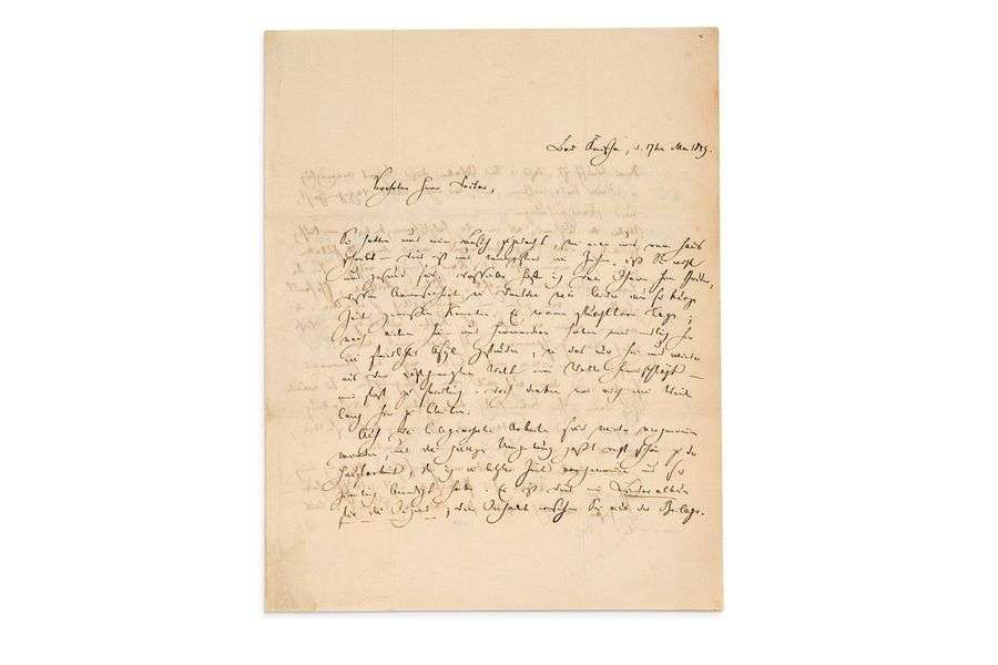 Longue lettre sur son Liederalbum für die Jügend. [Schumann était avec sa famille à Dresde lorsque l’insurrection révolutionnaire éclata le 3 mai 1849, et gagna Bad-Kreischa, où il résida à partir du 13 mai jusqu’à son retour à Dresde le 12 juin, et où il composa le Liederalbum für die Jugend op. 79, qui sera publié en novembre aux éditions Breitkopf & Härtel, que dirigeait Hermann Härtel (1803- 1875) avec son frère Raimund | ces derniers avaient refusé de publier, l’année précédente, l’Album für die Jugend pour piano op. 68.]