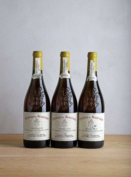 3 B CHATEAUNEUF DU PAPE Blanc (étiquettes plisseés dont 1 e.t.a| 1 clm.a.) - 2005 - Château de Beaucastel