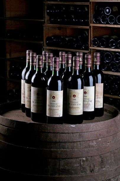 12 B CHÂTEAU DE FIEUZAL (Caisse Bois d'origine) (e.t.h.) - 1990 - CC Graves