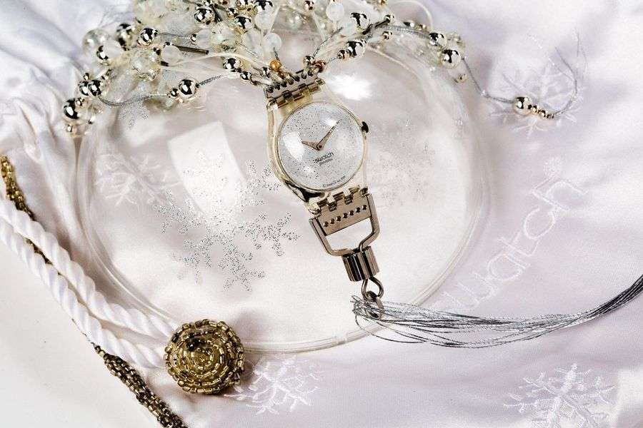 Montre décorative à accrocher au sapin dans sa boule de Noel d'origine
