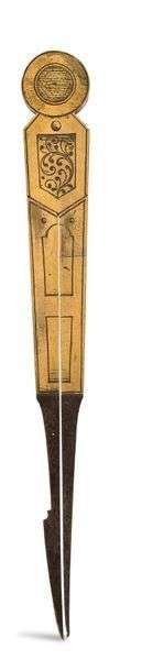Compas doré à pointes sèches gravé dans un cartouche de feuillages. Attribué à Erasmus Habermel.