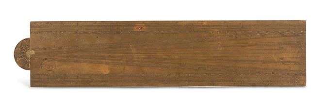 Grand compas de proportion en laiton signé Tho Heat Fecit n° 36. Il comporte les lignes traditionnelles ornées d'une chenille stylisée. Compas signé Tho Heath Fecit, XVIIIe siècle.