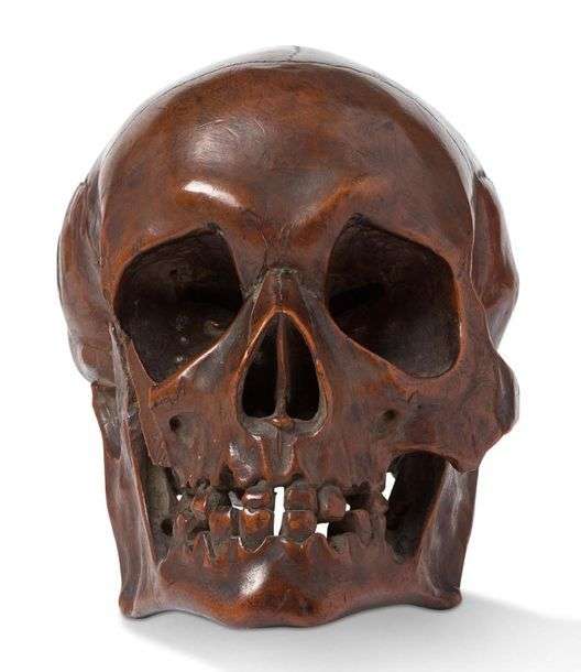 Crâne en buis sculpté