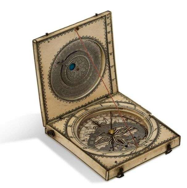 ~Bon cadran solaire analemnatique rectangulaire en ivoire « fait par Charles Bloud à Dieppe » Milieu du XVIIe siècle