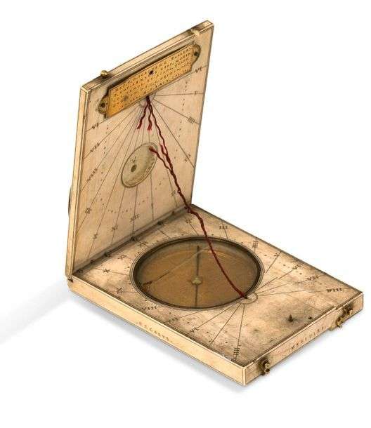 ~Très beau et rare cadran solaire diptyque en ivoire