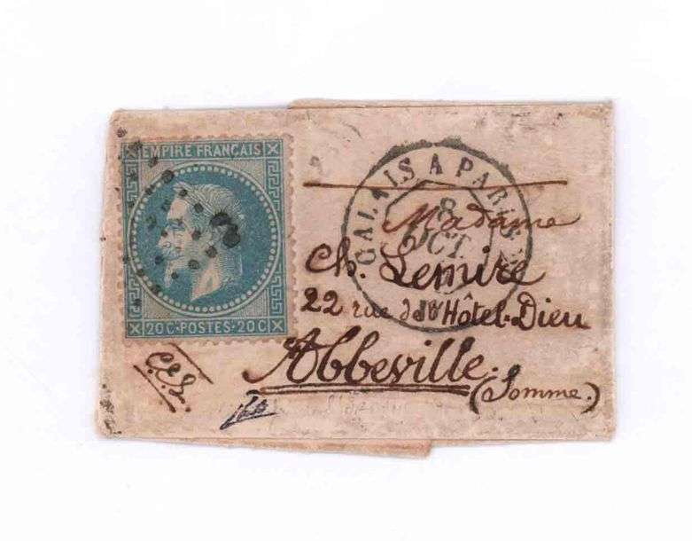 20c lauré obl. losange ambulant càd ambulant CALAIS à PARIS 2e, sur très petite lettre sans texte pour Abbeville.