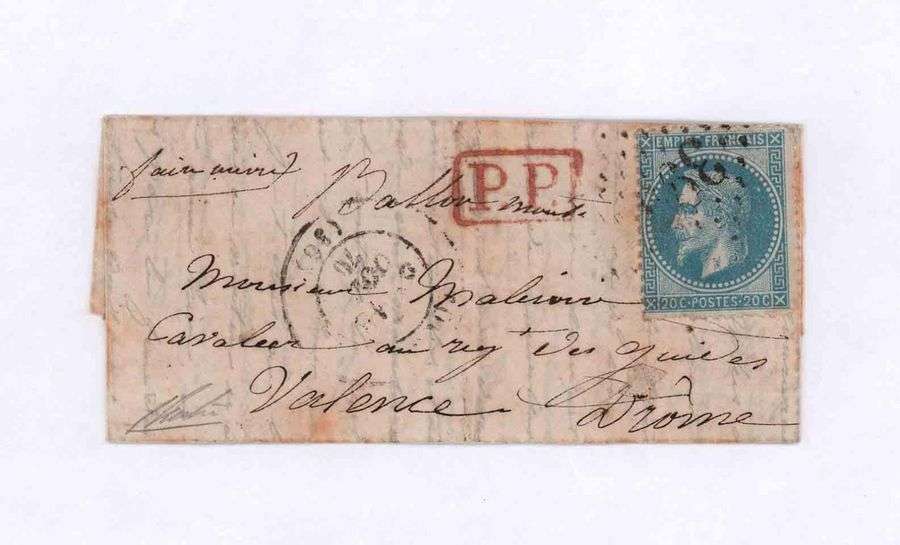 TOURS (faible) , Lm 13 octobre 1870 pour Valence, PP encadré rouge.