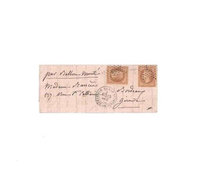étoile 35 PARIS Ministère des Finances sur Lm du 25 octobre 1870 pour Bordeaux. Au verso càd d'arrivée (faible). LE VAUBAN probable. TB/SUP.