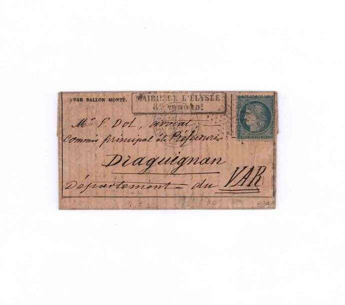 Au recto rare griffe encadrée MAIRIE DE L'ÉLYSÉE - 8e ARRONDt sur Gazette des Absents n°8 pour Draguignan. (Var). Au verso càd d'arrivée 27 NOV. 70.