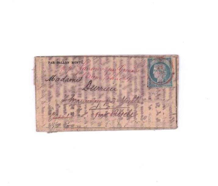 20c Siège obl. PARIS (SC) en rouge sur Gazette des Absents n°11 pour RISCLE et réexpédiée à Grenade-sur -l'Adour. Au verso càd d'arrivée du 31 DEC. 70. PLI TRANSPORTÉ PAR LE JACQUARD perdu en mer au large des îles Scilly. Troisième repêchage sur l'ïle de Bryher.