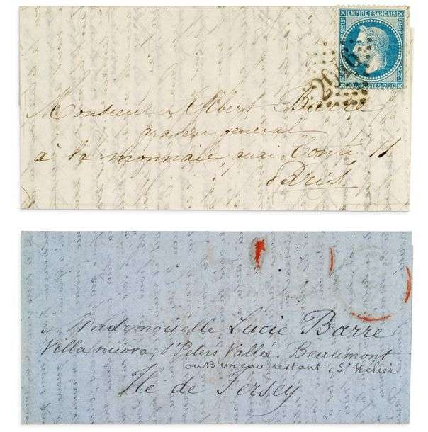 Joint également, un télégramme signé Barre (Lucie), de Jersey, du 27 décembre 1870 adressé à Paris « Lettres reçues. »
