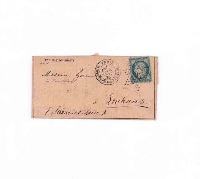 20c Siège obl. étoile 35 PARIS Ministère des Finances sur GA n°13 pour LOUHANS. Au verso càd d'arrivée partiel du 9 DÉCEMBRE 1870. LE FRANKLIN possible. TB.