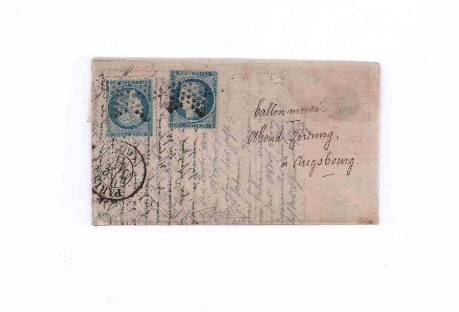 20c Siège deux exemplaires obl. étoile pleine PARIS (60) sur Agence Havas édition allemande du 1er et 2 janvier 1871, pour AUGSBOURG. Au verso càd de passage GENÈVE 20 1 71 et cachet d'entrée BASEL - BADIS... 23 Jan et griffe