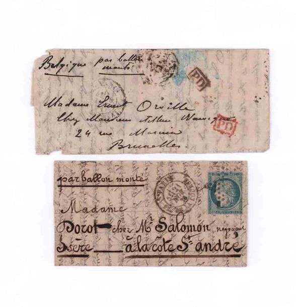 2 BALLONS MONTES BELGIQUE - 26 HANVIER 1871