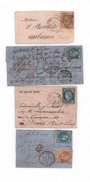ENSEMBLE DE QUATRE BALLONS MONTÉS dont une carte par Ballon ordinaire de la correspondance Alfred ROSELEUR. TB.