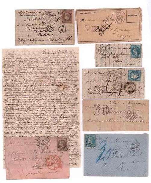 ENSEMBLE DE SEPT LETTRES PAR BALLONS MONTÉS dont une GA n°10 pour ALGER par LE JACQUARD, et deux lettres pour LONDRES. TB dans l'ensemble.