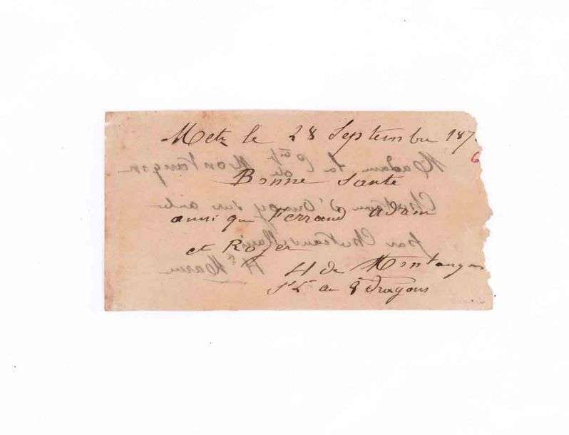 Billet daté Metz 28 septembre 1870 pour CHATEAUVILLAIN (Haute-Marne ), petit manque sur un côté. B/TB.