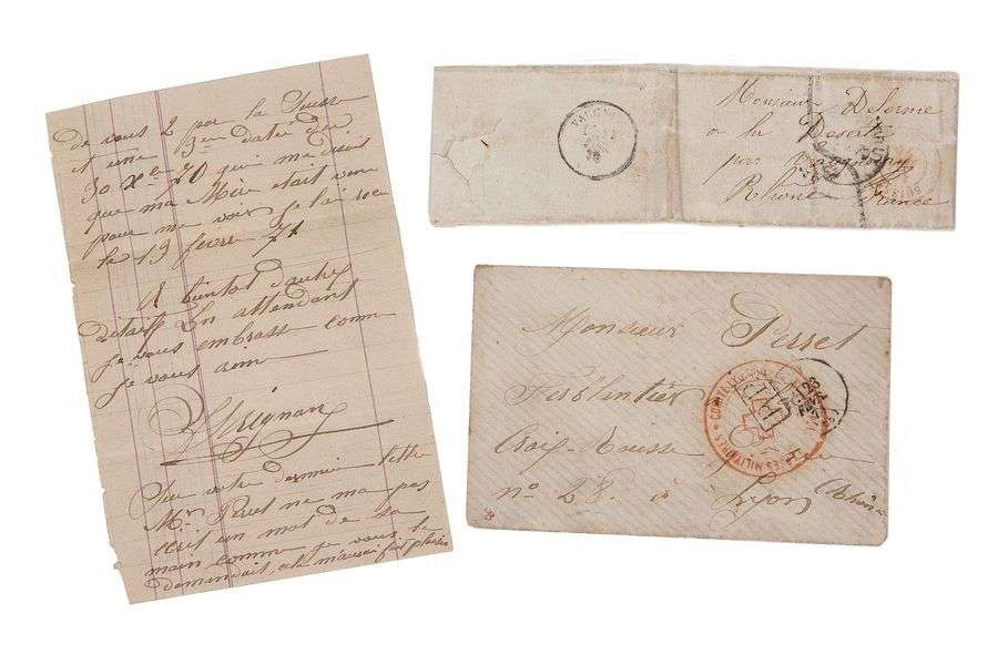 Ensemble exceptionnel de deux courriers. B/TB.