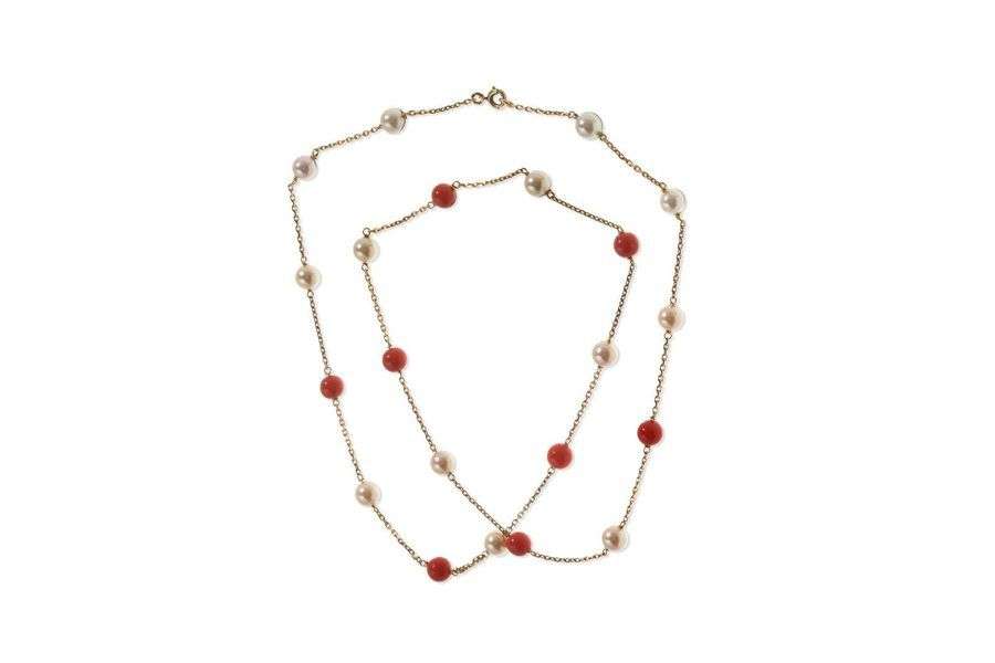 perles de corail et de culture, or jaune 18K (750)