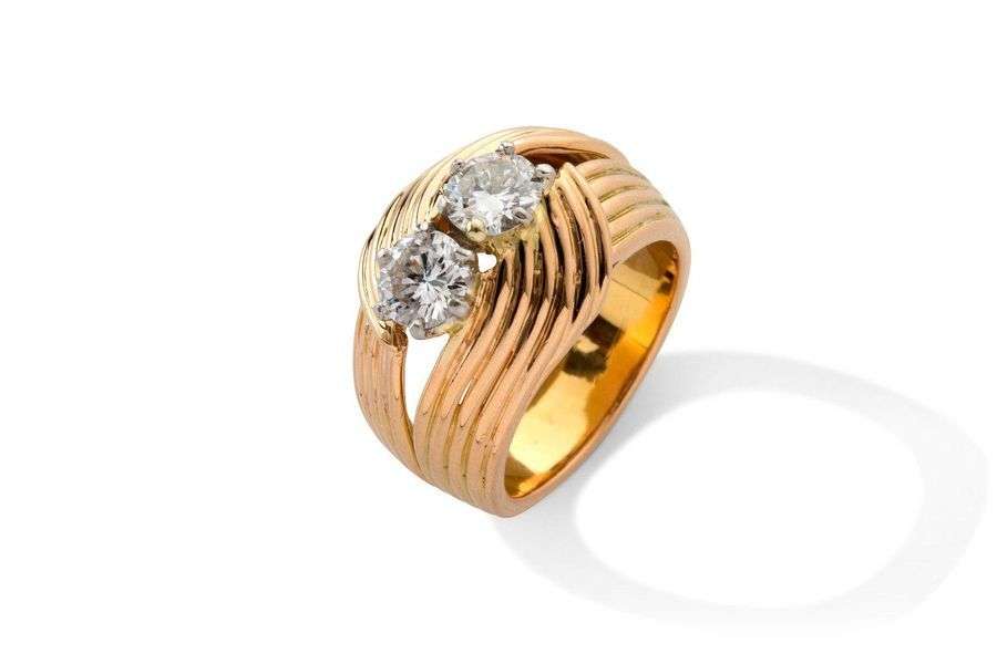 deux diamants ronds, or jaune 18K (750) et platine (950)
