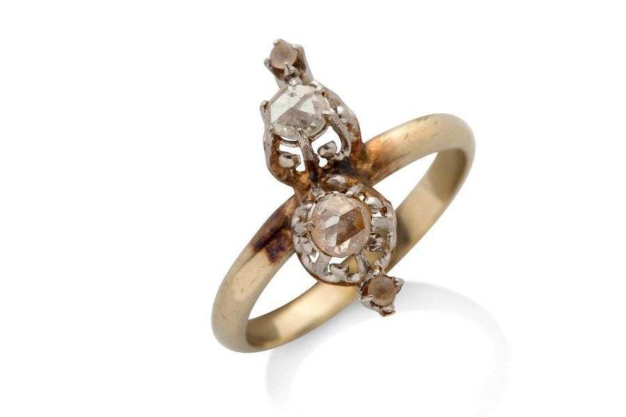 Bague Toi & Moi de diamants de taille rose, or gris 18K (750), platine (850)
