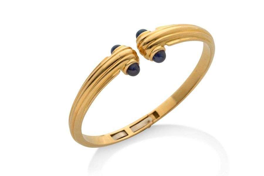 bracelet jonc ‡ ouverture, cabochons de saphirs, or jaune 18K (750)