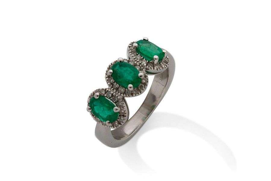 Bague sertie de trois Èmeraudes, or gris 18K (750)