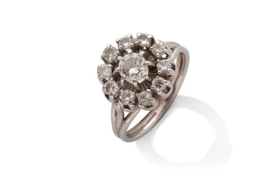 Diamants demi-tailles, or gris 18K (750), platine (950)