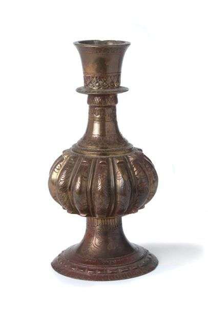 Chandelier en bronze doré à godrons ciselé sur piédouche, col évasé