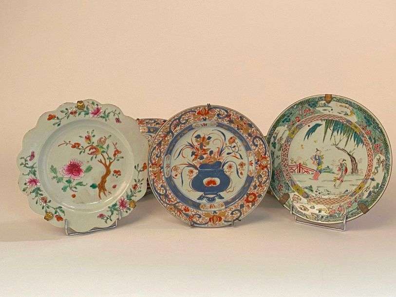 Lot de 6 asssiette circulaires en porcelaine imari. Chine. Décorée dans la
