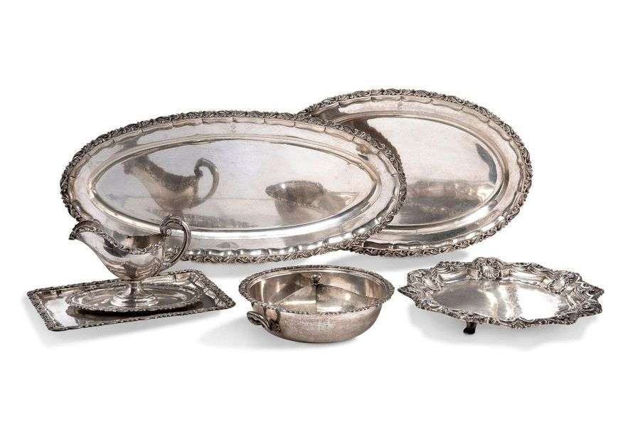 On y joint, au motif, un ensemble en métal argenté comprenant :