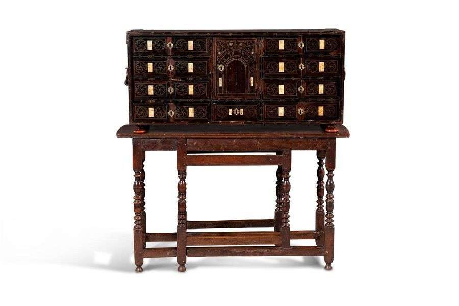 Cabinet en ébène à incrustation de laiton à décor de rosaces et du'une arc