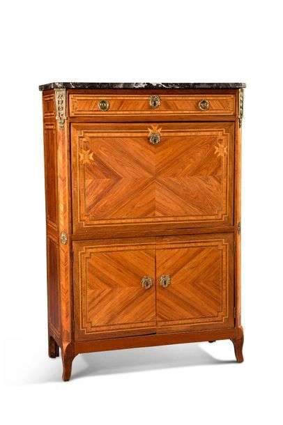 Secrétaire ouvrant à un tiroir, un abattant et deux vantaux, en frisage en
