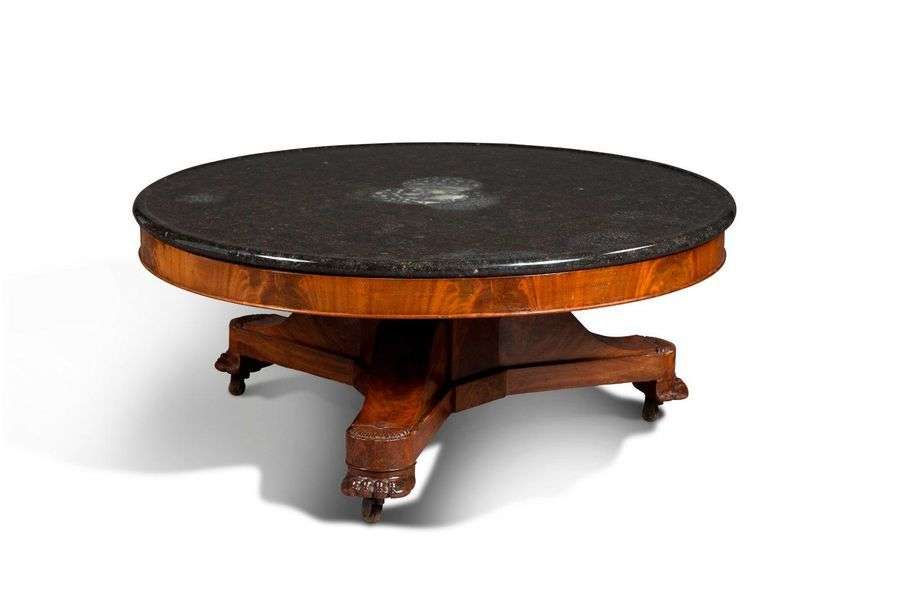 Guéridon tripode à pattes de lion en acajou et placage d'acajou transformé en table basse,