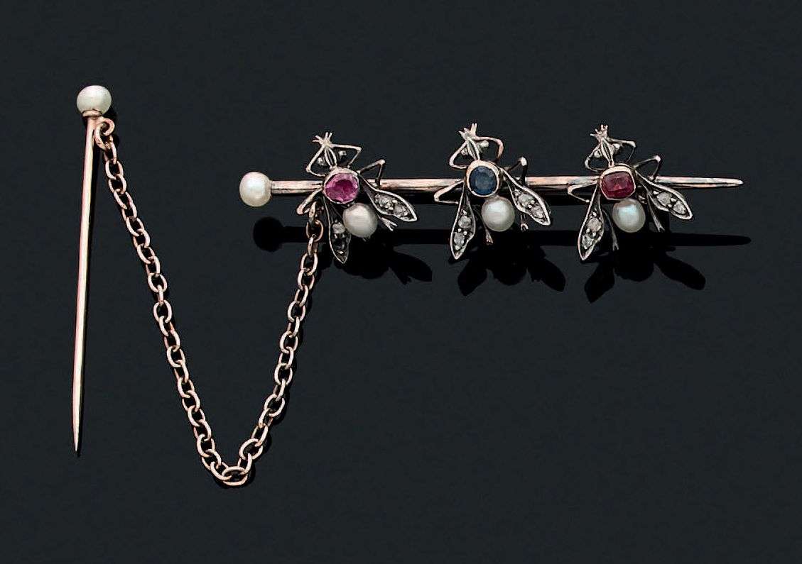 Perles, diamants taille rose, or 18K (750) et argent (<800)