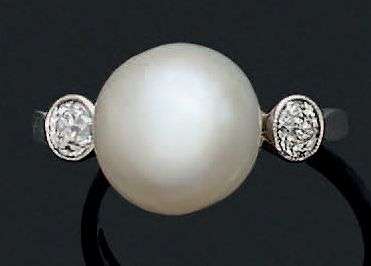 BAGUE Perle de culture, diamants, platine (950)
