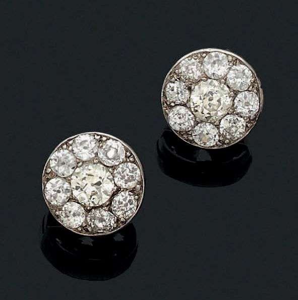 PAIRE DE MOTIFS D'OREILLES Diamants de taille ancienne, or gris 14K (585),