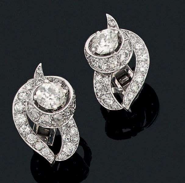 A diamond, platinum and gold earrings, signed