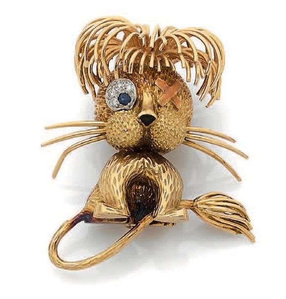 An enamel, diamond, sapphire and gold clip, signed